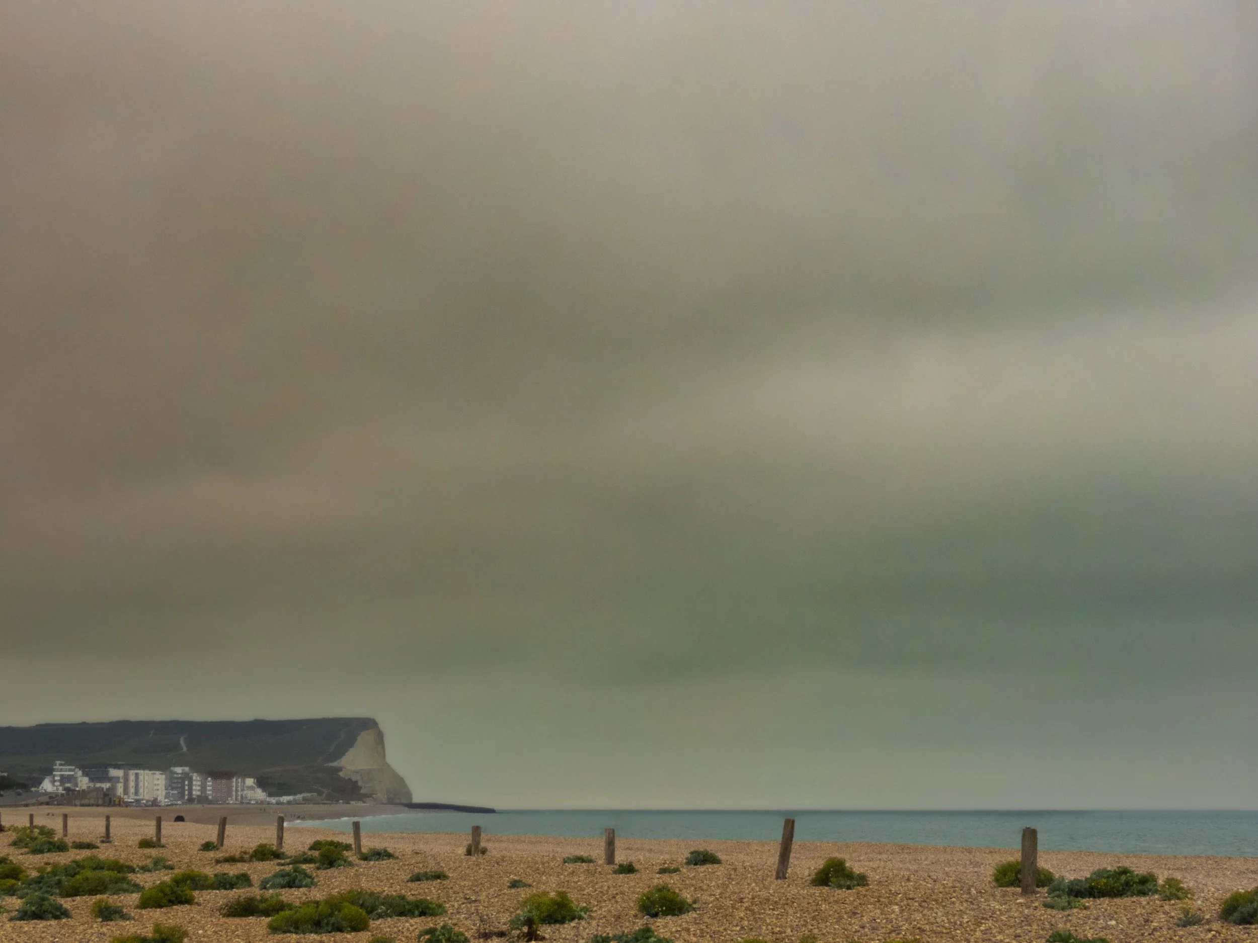 11 June 2025. The promise had been for clear skies, but arriving early enough for the sunrise, everything was all but obliterated by the heavy sea fog. The tide was out though, so it was possible to walk along the foot of the cliffs. The famous Seven Sisters, supposed to be one of the most spectacular sights of the Southern English coast - but instead, they loomed out of the mist. Still hauntingly majestic, though. Not quite daring to ford the Cuckmere by wading, at Cliffs End it was necessary to detour inland to the Exceat bridge, and back to Seaford Head. Climbing up above the Coastguard Cottages, the fog by now had lifted, offering something of the famous view of the Seven Sisters. But it was brief, because in the fog rolled again, and so Seaford Head was crossed with almost zero visibility. Reaching Seaford itself, the walk could have been cut short. But they day did appear to be lifting, and so I continued. Along the shingle banks to the detour up through Newhaven. Then on to Peacehaven, with its promenade along the base of yet more impressive white cliffs. While in the distance, Brighton begins to loom. 16 miles (Total walked 802 miles, 64 in Sussex)