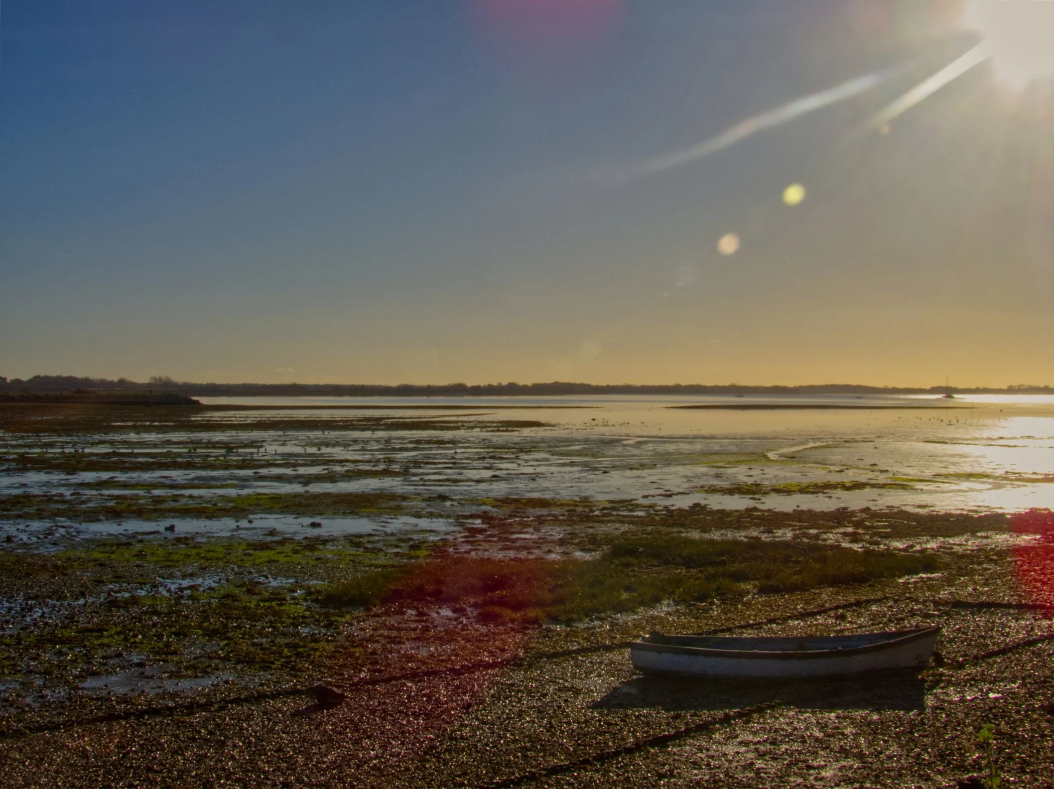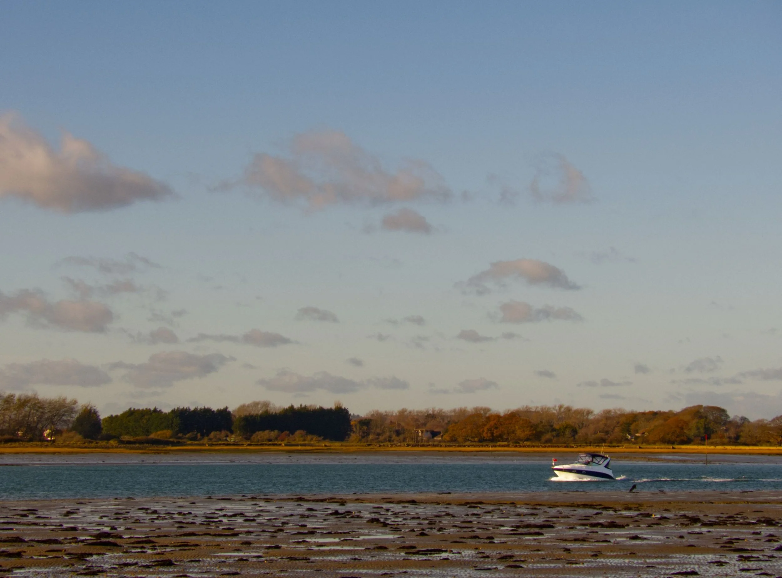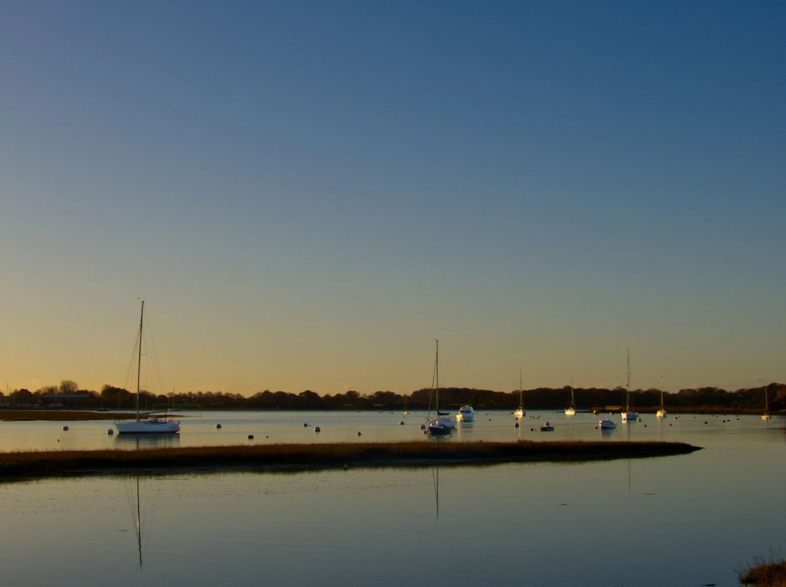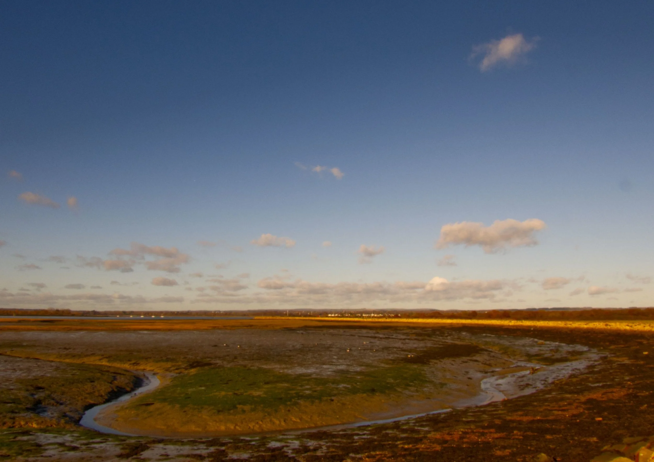 30th November 2025. Continuing around the channels and creeks of Chichester Harbour. Watching the sun rise above Bosham, while tracing the coast past Chidham, round Cobnor Point, and up past the Nutborne Marshes. A stillness on the air, and on the water. Reaching Thorney Island, the way barred by a gate as, on crossing the Great Deep, the land becomes military, headquarters of the Royal Artillery. But so long as you promise to keep to the coastal path, they let you through - after their cameras have had a good look at you. Salt marshy down one side, giving way to the sands of Pilsey. Then back up Emsworth Channel, to reach the Hermitage Bridge, and the crossing into Hampshire. The end of the Sussex has been reached. 15 miles (Total walked 893 miles, 155 in Sussex)